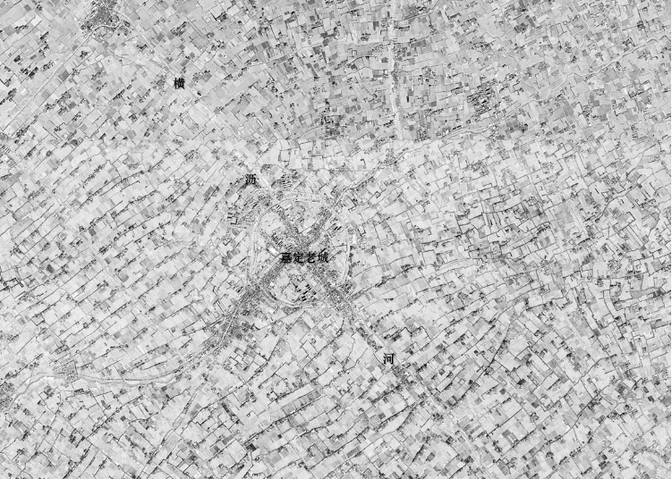 1970年代嘉定影像图,可以看到横沥两侧(冈身地带)明显的水乡肌理变化