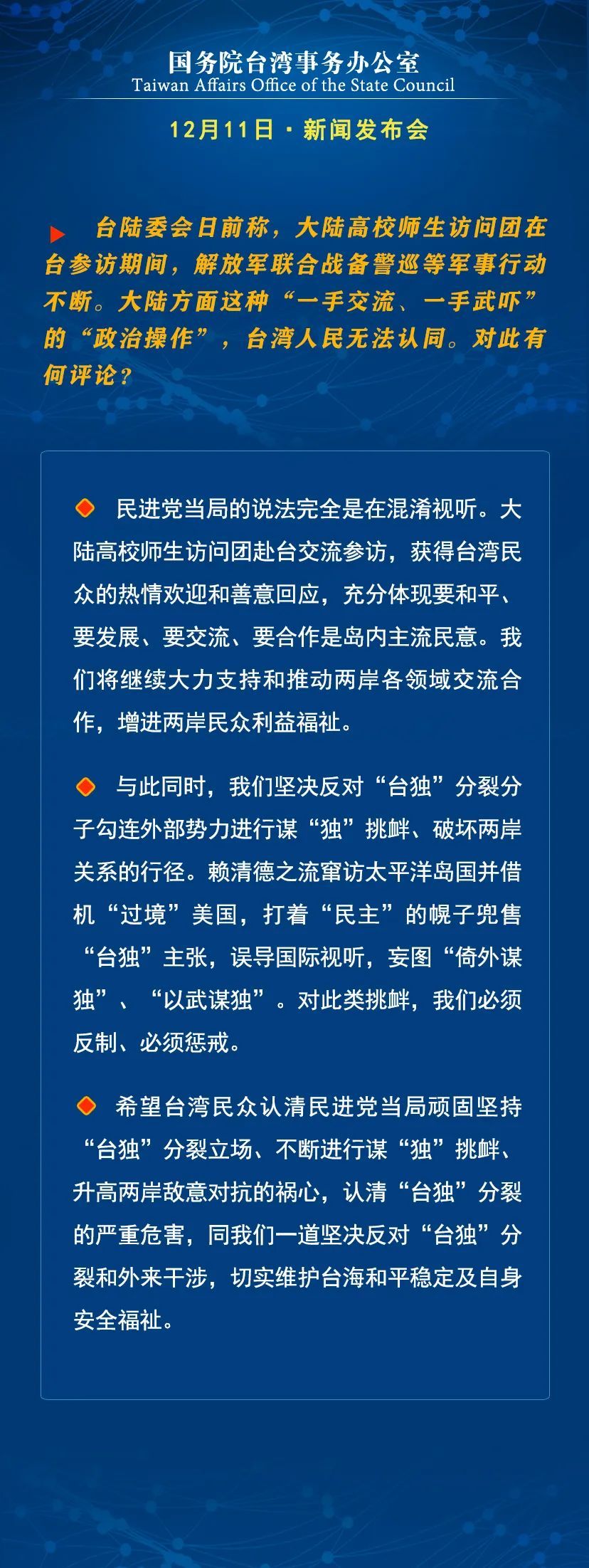 国台办:强烈谴责民进党当局伙同岛内特定媒体、网军进行网络霸凌
