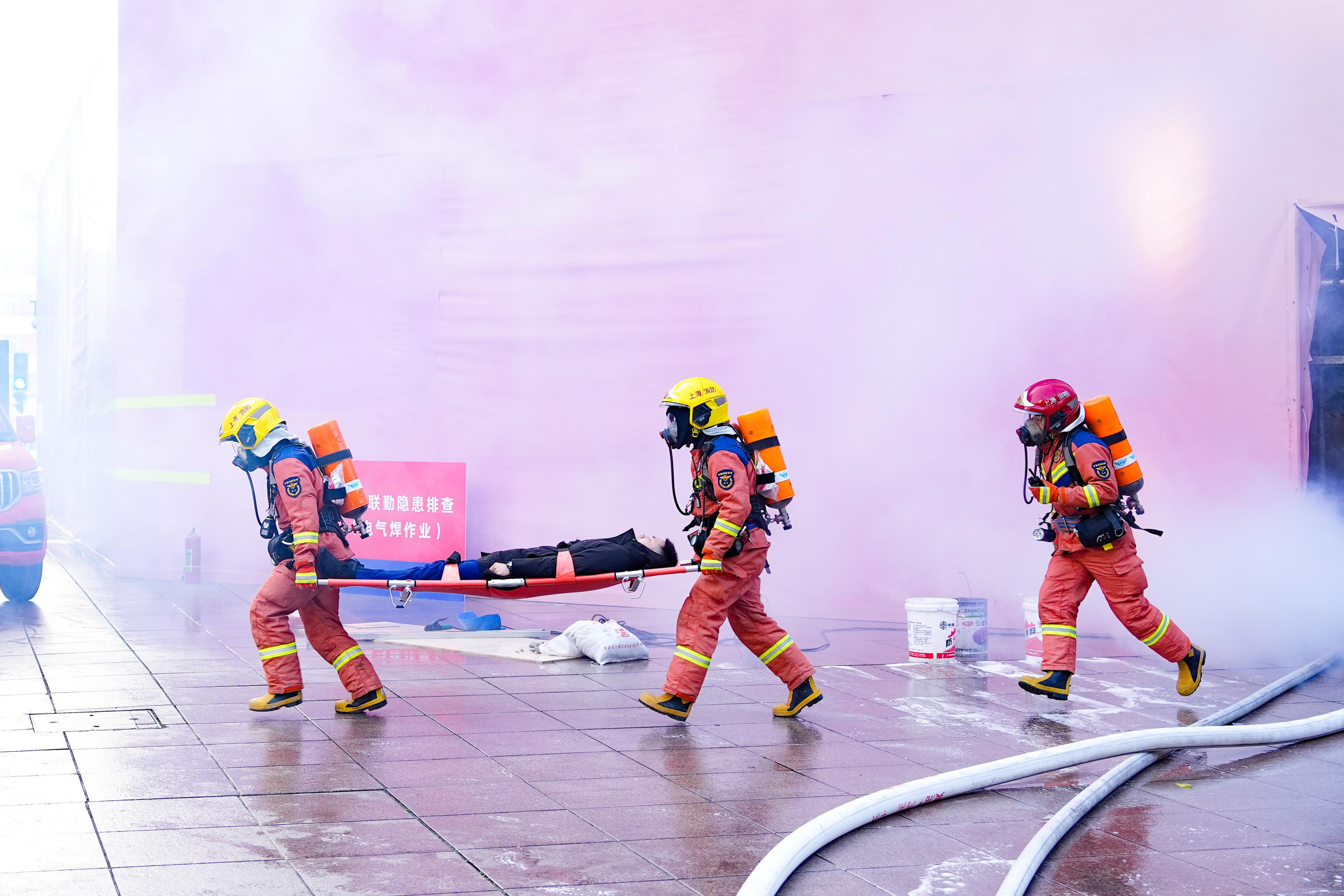 置地广场作为上海资历深厚的老牌商场,正在进行装修改造。这场综合性实战演练,除了着眼于置地广场作为大型商业综合体的固有属性,更聚焦于市中心繁华闹市区高层建筑外立面火灾事故这一场景而展开。演练采用了“情景式、分段化、递进式”的创新模式,紧紧围绕火灾处置的全流程这条主线,将各个关键处置环节作为核心要点,共设置防消联勤、单位自行处置、社区微型消防站处置、巡防力量应急处置、辖区消防站专业处置以及区消防救援局统筹指挥处置等六大环节。
