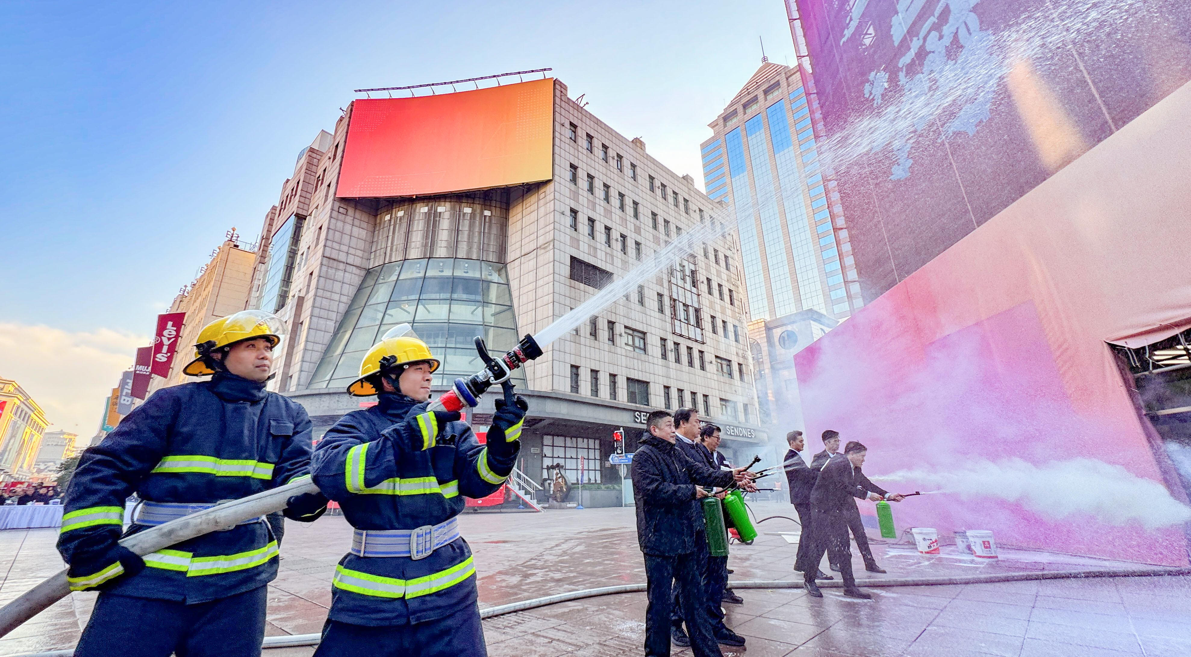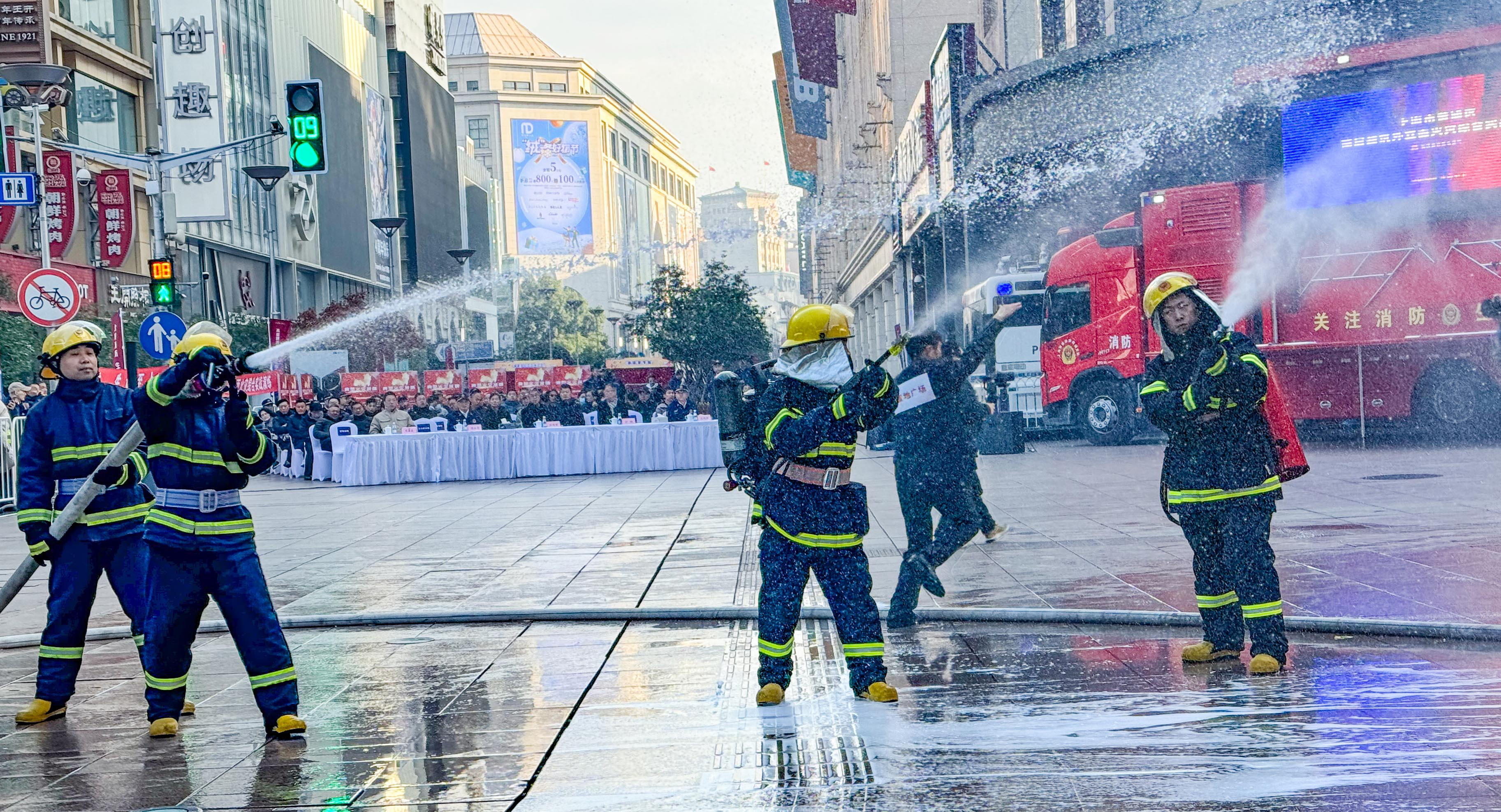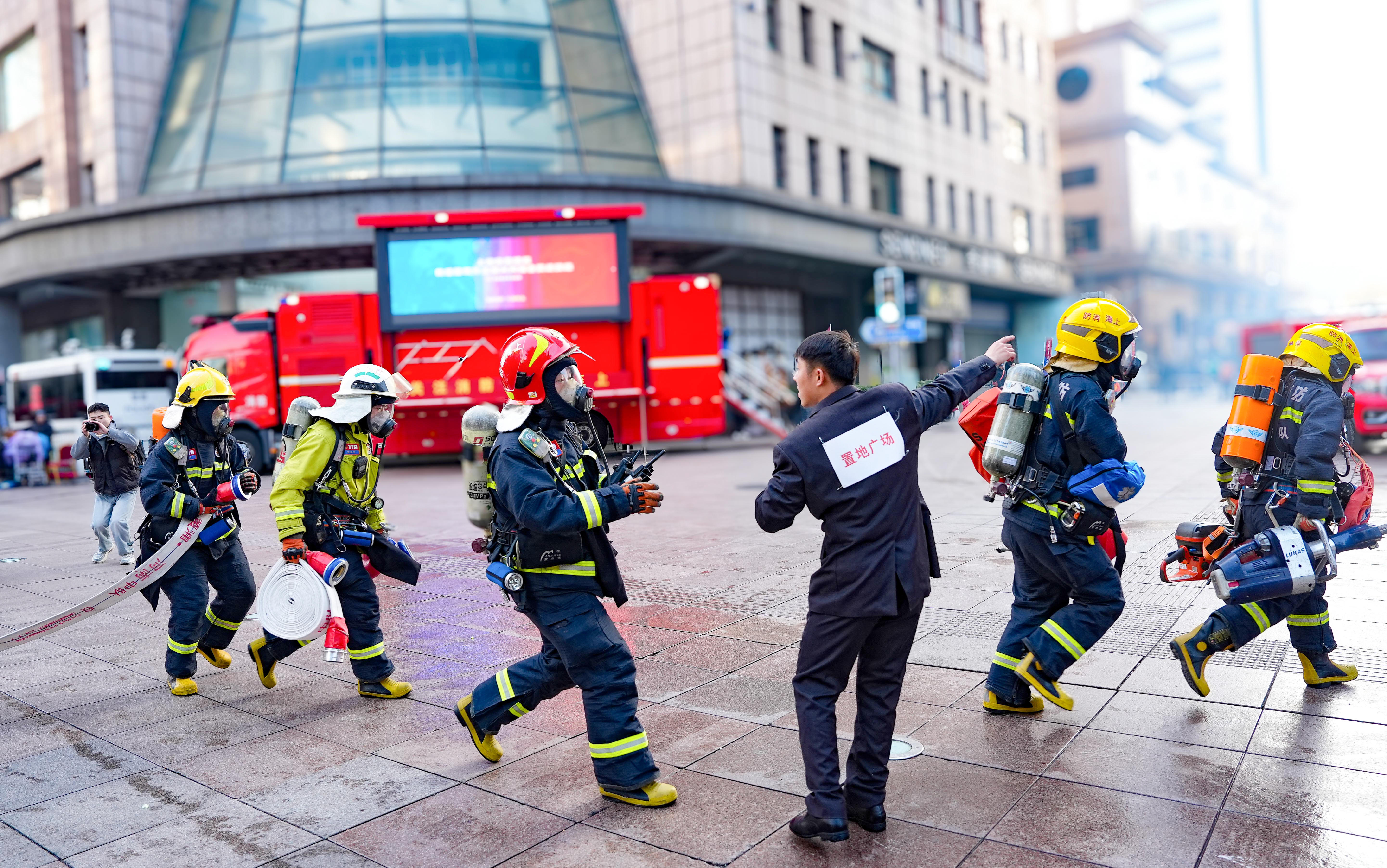 12月12日清晨,一场规模宏大的消防综合演练在位于南京路的置地广场进行。此次演练由黄浦区消防救援局携手区公安分局、外滩街道、南京东路步行街办公室、南京东路派出所和申能集团共同组织开展。