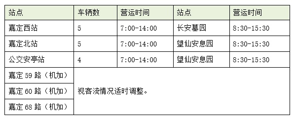 记者从区公交公司了解到,本周末及下周末,嘉定公交公司将在轨交车站和墓园之间增派接驳公交,同时增加途经墓园的公交线路运力,为落葬祭扫市民出行提供便利。