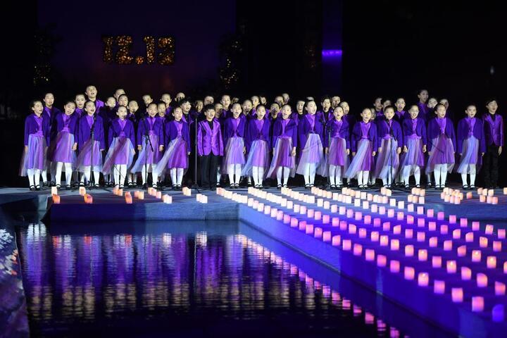 现场,大屏上播放的一则沙画视频绘制出人们对遇难同胞的悼念和对和平的祈愿,紫金草艺术团童声合唱团的孩子们唱响原创歌曲《和平吹拂紫金草》,带来追思,抚慰心灵。牢记历史,不忘过去,珍爱和平,开创未来。和平之声,久久回响。