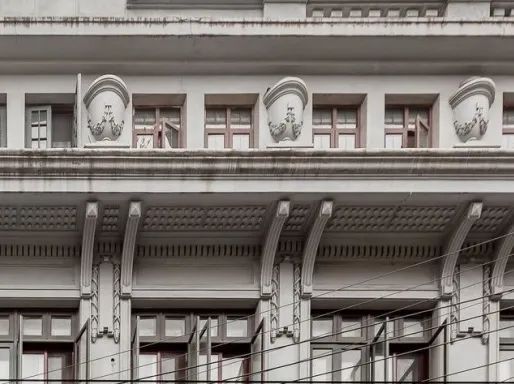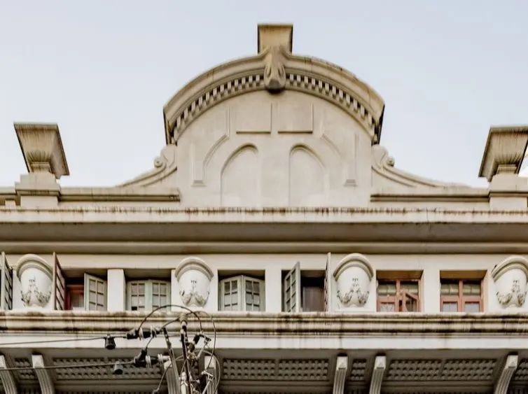 大楼采用经典的“三段式”构图,南立面底层中部有两个拱形门洞,二三层之间窗槛墙有菱形组合的纹饰,三层顶部腰檐凸出较深,底面布满小圆形装饰,支撑有弧形托架,四层部分窗户有杯形装饰凸出,南立面大楼顶部装饰精致细腻,凹凸有致。整个立面层次分明而又不乏大气,庄重而典雅。