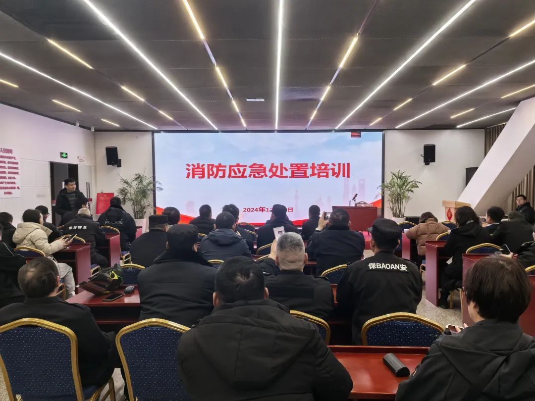 演练开始前,凌云派出所的警官为街道各物业公司的经理和小区保安进行了消防应急处置培训,让一线人员掌握应急处置的流程和应对方法。
