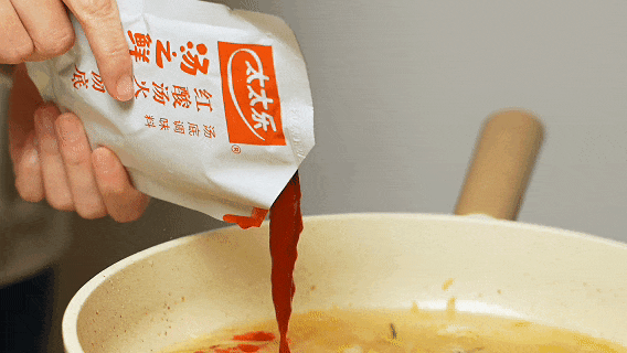 2.热锅冷油炒香蒜末酸菜,锅中加入清水煮沸,再放入火锅汤底调味料提鲜增香。