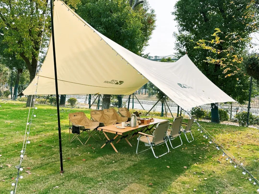 该营地分为五个功能区,拥有可供开展大型团建活动、天幕烧烤、露营、围炉煮茶、篝火晚会等活动的超2000平方米优质草坪,还有真人CS、射箭等项目,为市民游客提供自然、休闲、生态、绿色的休憩活动空间。基地提供齐全的露营装备,帐篷、烧烤用具、户外椅子等都能一站式租赁。想要更亲近自然,干净舒适的露营空间已准备就绪。