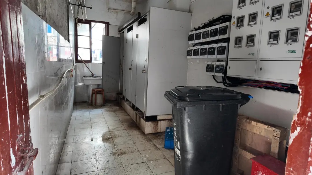 斑驳的墙面、蜘蛛网般的电线、脏乱的环境……走进徽宁路22弄,一排破旧的两层老楼,映入眼帘。始建于1949年左右,砖木结构,内部无厨房,东西两侧各有一处公共卫生间,整体环境较差,房屋老化严重。