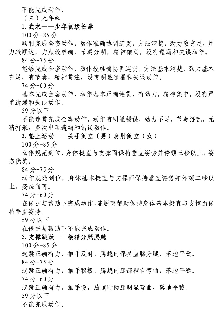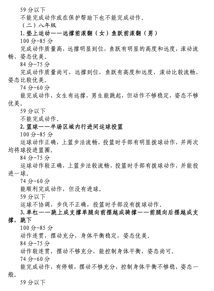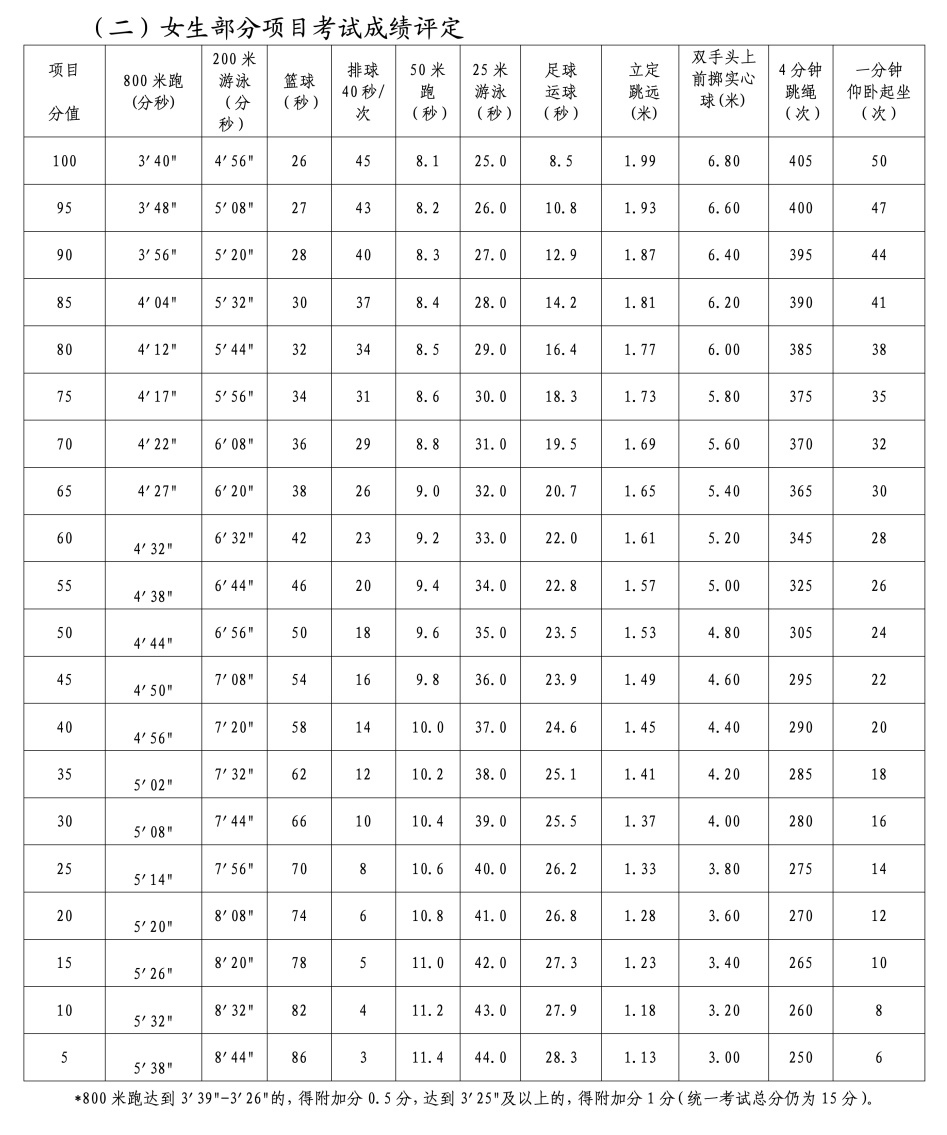 体育统一考试项目成绩评价标准