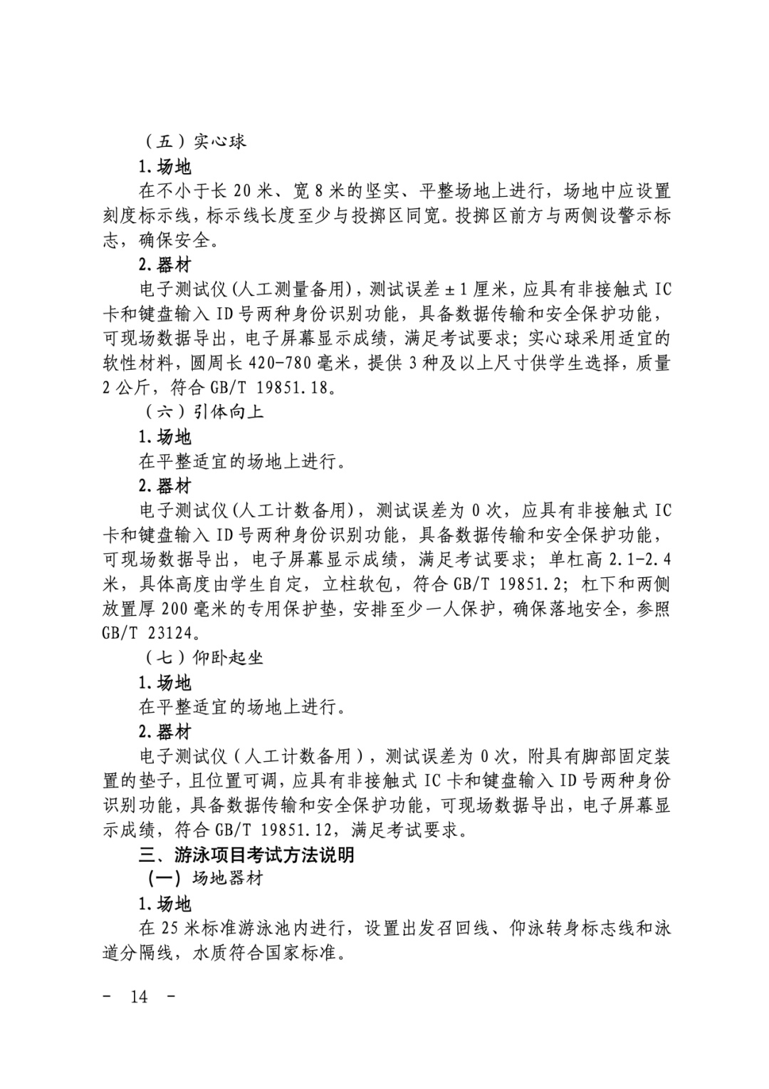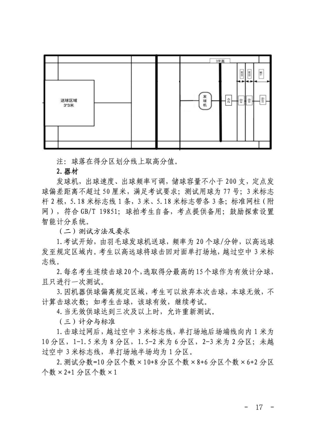 二、部分项目场地器材要求