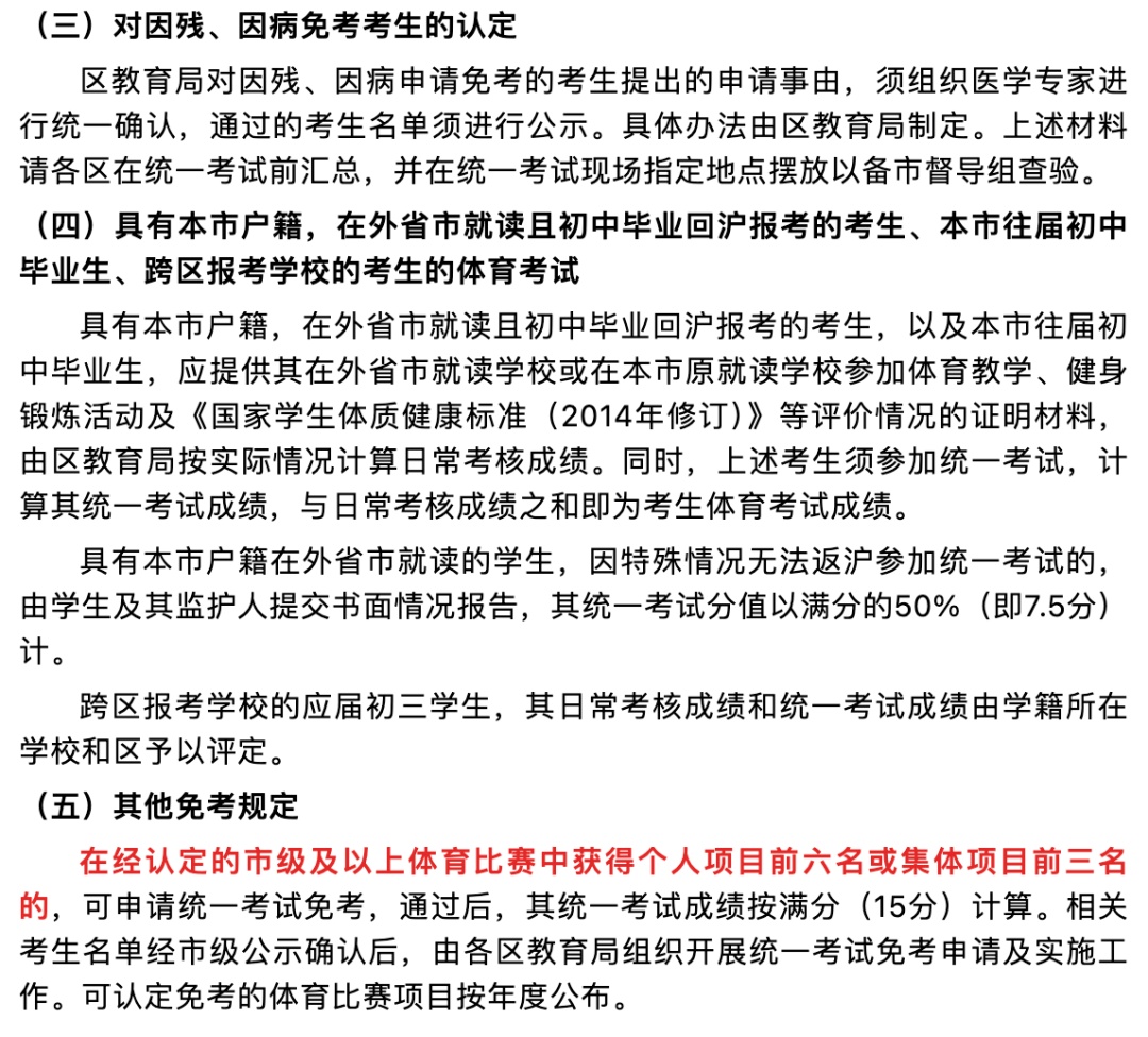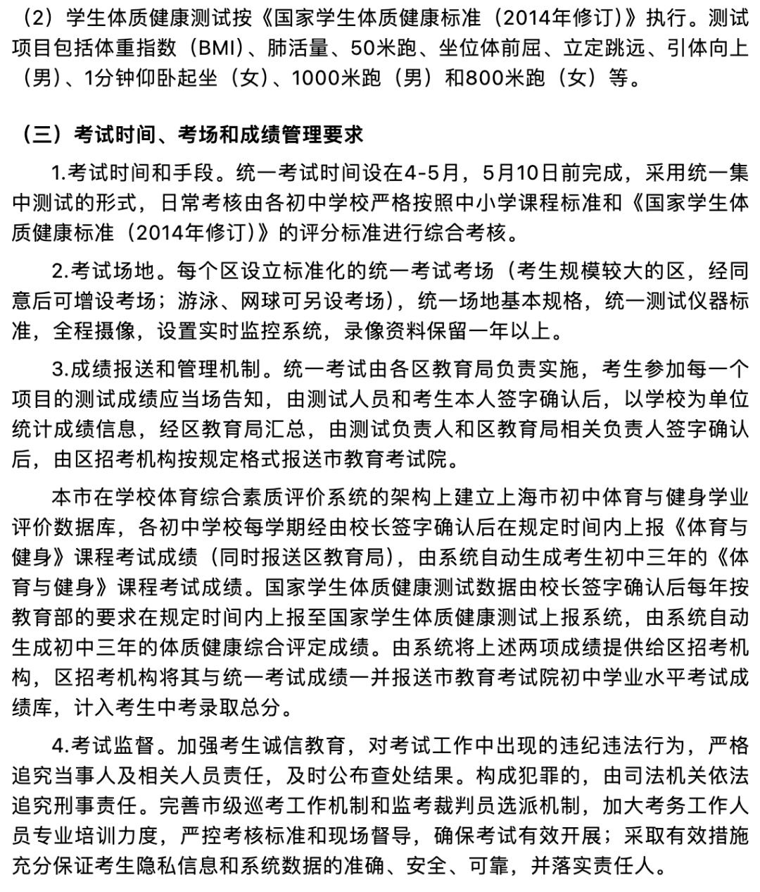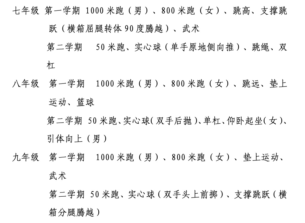 上海市初中毕业升学体育