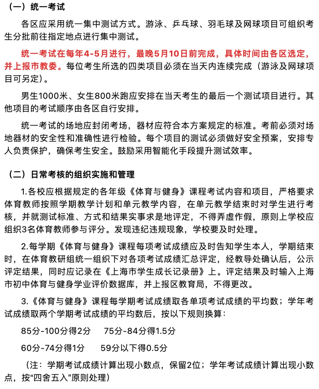 二、体育考试的原则和要求