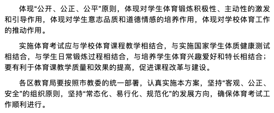 为全面贯彻落实《中共中央 国务院关于深化新时代教育评价改革总体方案》(中发〔2020〕19号)、《中共中央办公厅 国务院办公厅关于全面加强和改进新时代学校体育工作的意见》(中办发〔2020〕36号)等国家和本市有关文件精神,进一步完善本市初中毕业升学体育考试(以下简称“体育考试”)工作,结合本市学校体育改革发展实际情况,制定本实施方案并自2022学年的七年级起实行。