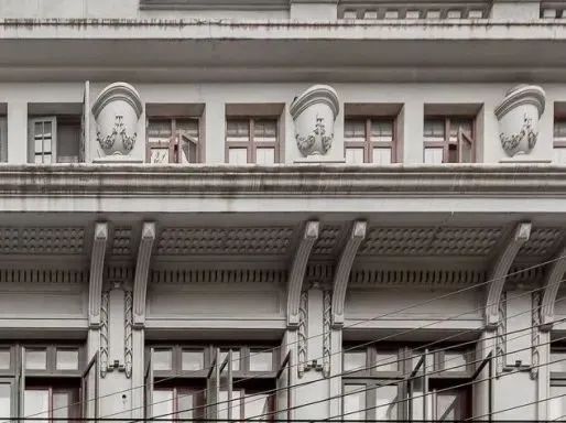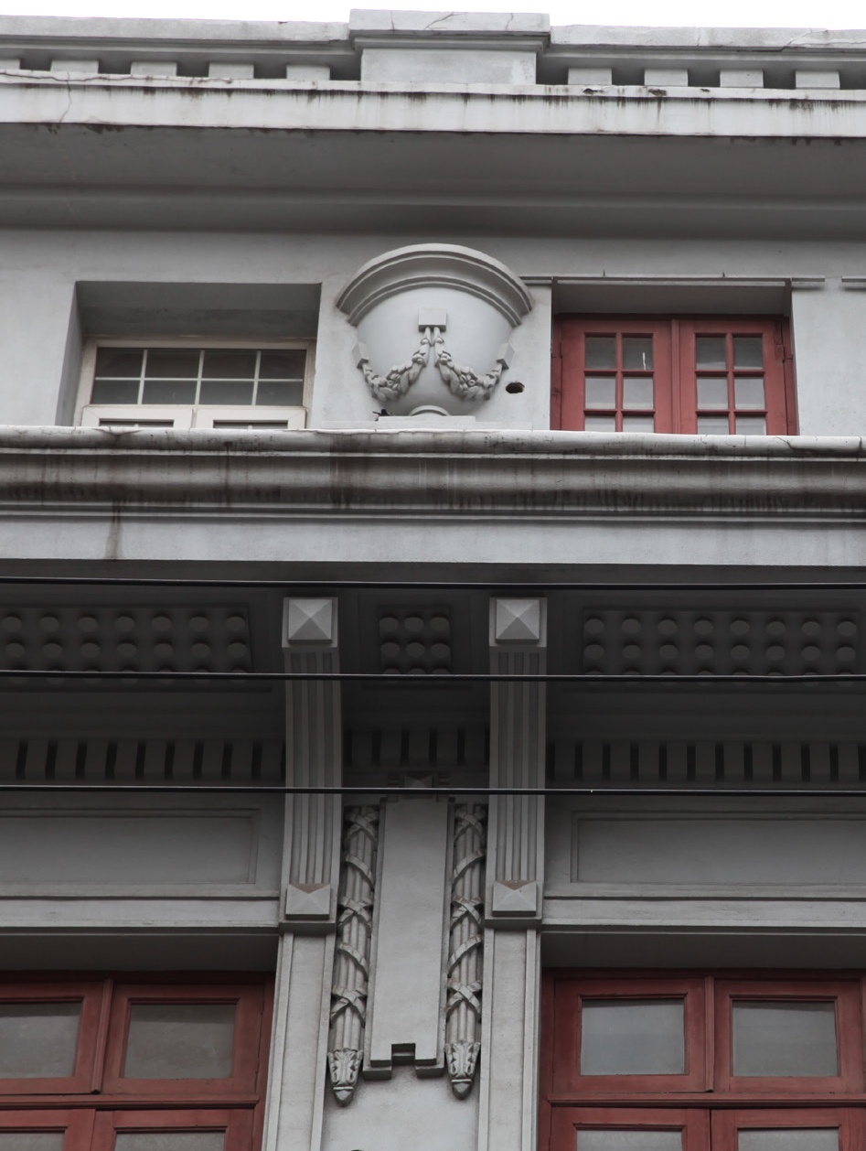 九江路230号原大生公司大楼,为近代著名实业家张赛创办的大生纺织公司的办公大楼,1920年竣工,曾作为九江中学、黄浦政协、黄浦卫生局、青旅国际等使用,现为全季酒店,2015年被上海市人民政府公布为上海市优秀历史建筑。 原大生公司大楼由裕和洋行设计,为五层钢筋混凝土结构。外观设计简洁,具有折衷主义风格特征。平面近似呈梯形,屋面为平屋顶,外墙为青灰色素色水泥粉刷。 九江路230号外立面 大楼采用经典的“三段式”构图,南立面底层中部有两个拱形门洞,二三层之间窗槛墙有菱形组合的纹饰,三层顶部腰檐凸出较深,底面布满小圆形装饰,支撑有弧形托架,四层部分窗户有杯形装饰凸出,南立面大楼顶部装饰精致细腻,凹凸有致。整个立面层次分明而又不乏大气,庄重而典雅。 九江路230号外立面细节 / / / 外滩第二立面 金融基因深厚的九江路,在外滩“第二立面”综合区域整体焕新中,以金融主导的商务办公、特色聚集的商业为主体功能,未来将吸引高能级金融产业聚集,打造以多元融合的文化、多样供给的居住为特色,延续城市历史文脉的城市漫步新空间。