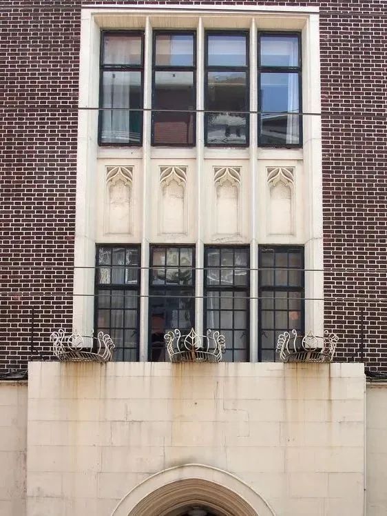 外立面采用暗红色耐火泰山砖墙面,屋顶有两处三角形山墙及雉堞女儿墙,一、二层联通窗套,二层窗下有带尖券花饰,顶部檐口有雉堞处理,山墙中间带有葡萄藤装饰图案,门、窗套间带有基督教符号的建筑盾牌形纹章装饰图案。 九江路219号外立面细节及内部空间 04|上海市优秀历史建筑 九江路230号 大生公司大楼