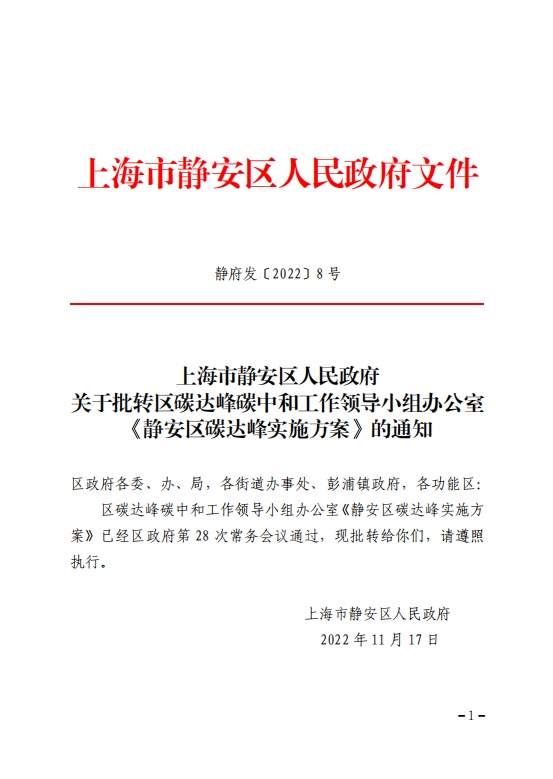 静安区编制《静安区碳达峰实施方案》《静安区城乡建设领域碳达峰实施方案》。