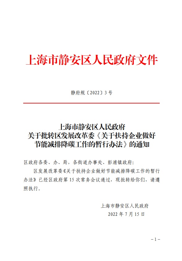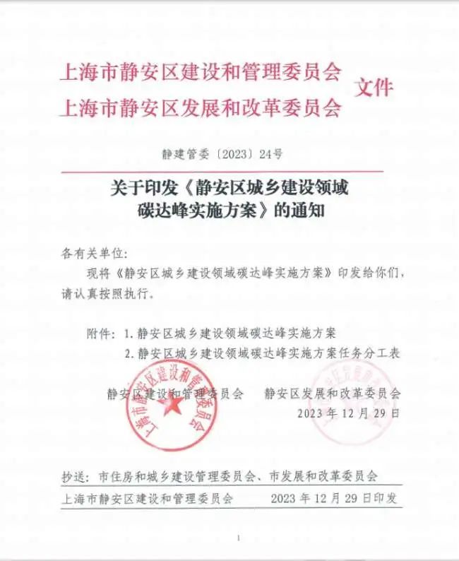 静安区编制《静安区碳达峰实施方案》《静安区城乡建设领域碳达峰实施方案》。