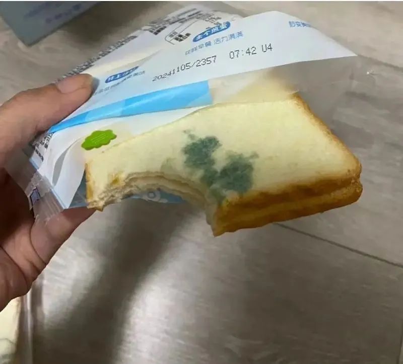 此前自称吃了百草味发霉吐司