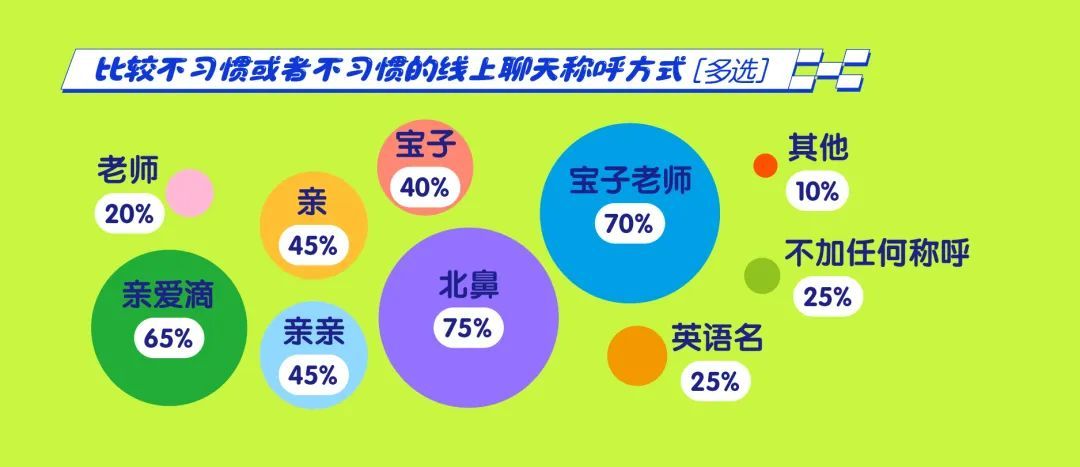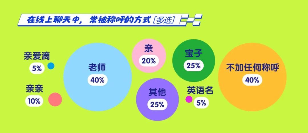 青年报·青春上海问卷显示,在常被称呼的称谓中,“老师”和“宝子”脱颖而出,成为出现频率最高的两个词汇,占比分别约为40%和25%。