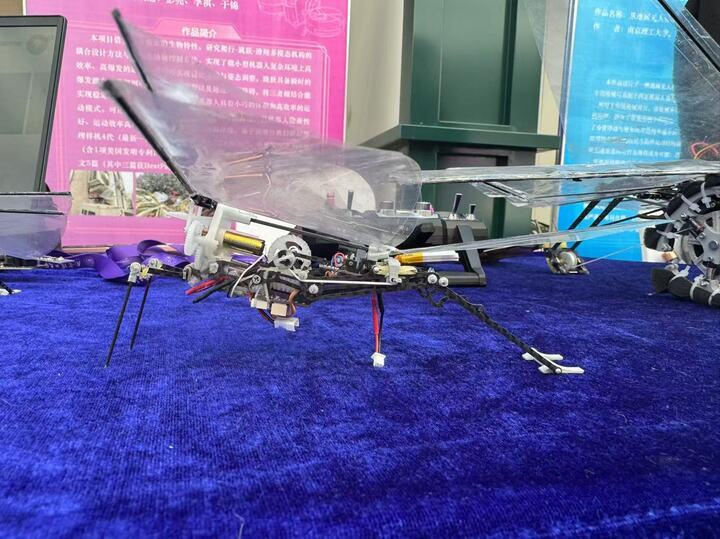 除了鸽子外,比赛现场类似蝗虫的一款微小型陆空跨域仿蝗虫机器人也让人眼前一亮。