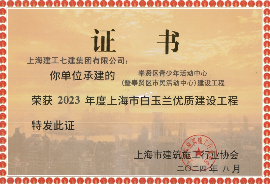白玉兰奖创立于1989年,是上海市建筑行业工程质量的最高荣誉奖,旨在表彰上海市建筑行业工程质量最优秀的工程项目。