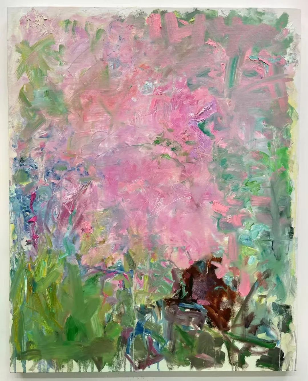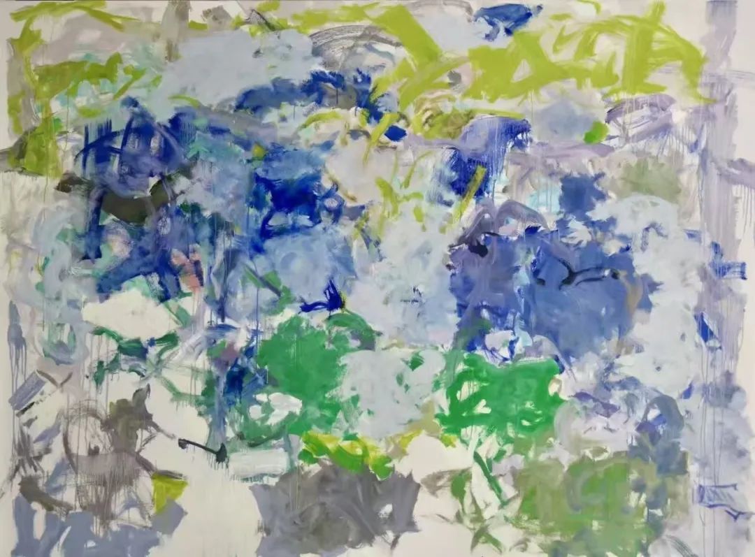 “以作品《紫阳花》为例,它主要是透过紫阳花在我脑海中留下的印象,然后通过色彩层层叠加笔触串联的手法将它重新描绘出来,通过色彩的对撞,实现既保留物体的立体感,又增加了视觉的冲击。”赵子韬介绍。