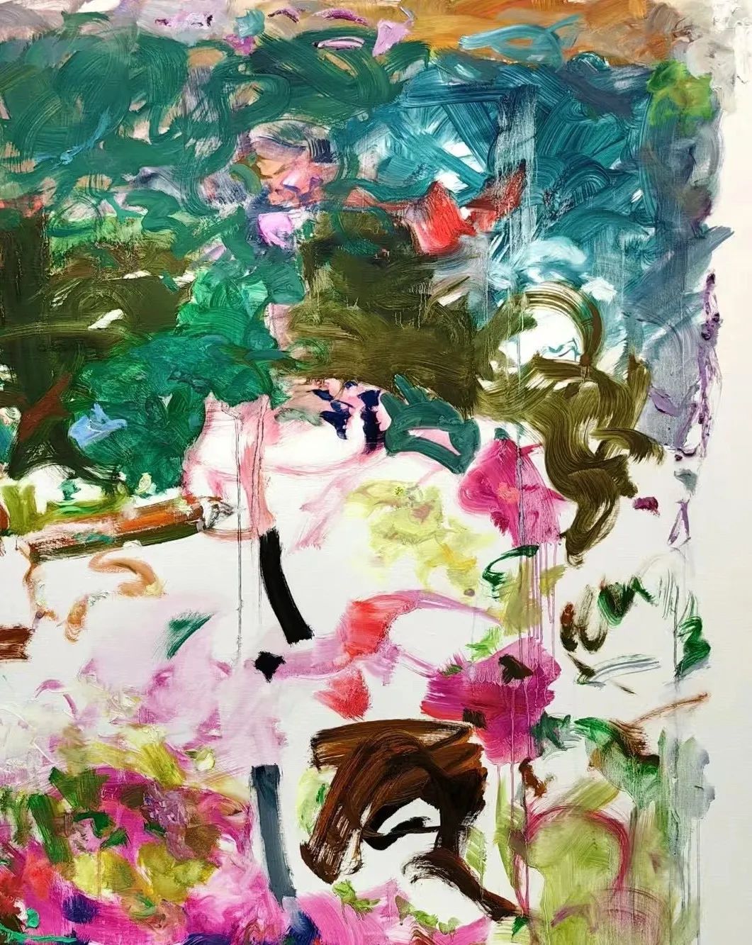 策展人王乐佳说,当自己第一次来到名士居时,就被这里光影交错、青砖绿树环绕的环境迷住了。“在这个古宅里做一场别开生面的艺术展的想法,跃然于我们心中,传统与当代油画的辉映,一定别有一番风味。”艺术家、策展团队与名士居主理人赵辉一拍即合,促成了本次“拾色”画展。