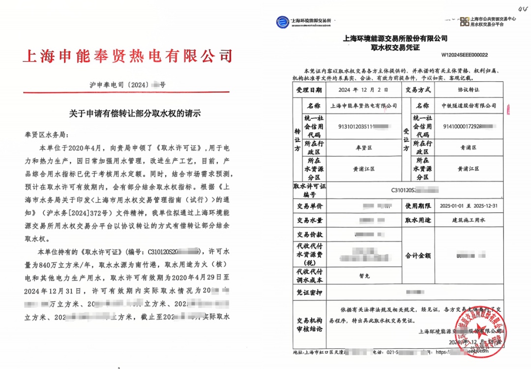 本次水权交易转让方为上海申能奉贤热电有限公司,通过产线优化和节水技改,年度取水量有所结余。受让方为中铁隧道股份有限公司,需要满足市域铁路建设施工用水需求。在上海市水务局、上海环交所的指导下,奉贤区水资源管理所高效精准地促成本单2万余立方米交易水量,不仅满足用水企业短期小额需求、帮助节省资金和时间成本,也为水资源管理部门带来便利。