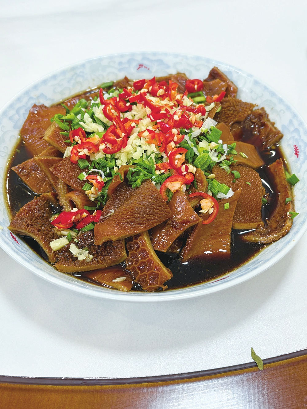 沈老板将切好的红烧羊肉、羊蹄、羊肚等端上桌,还有盐水虾、红烧鳊鱼等,一看就很诱人。席间,我忙着打听阿六羊肉背后的故事,但沈老板没说几句就去忙了,待我们吃饱喝足,他也没能停下来。