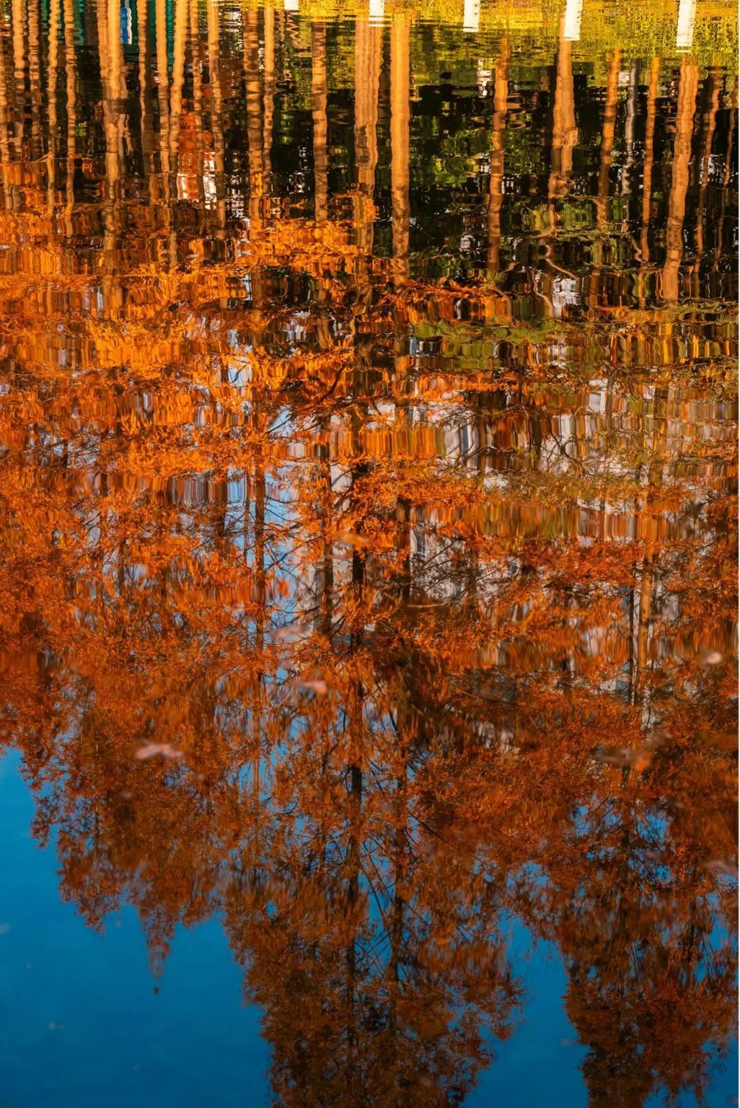 红叶与水中的倒影交错