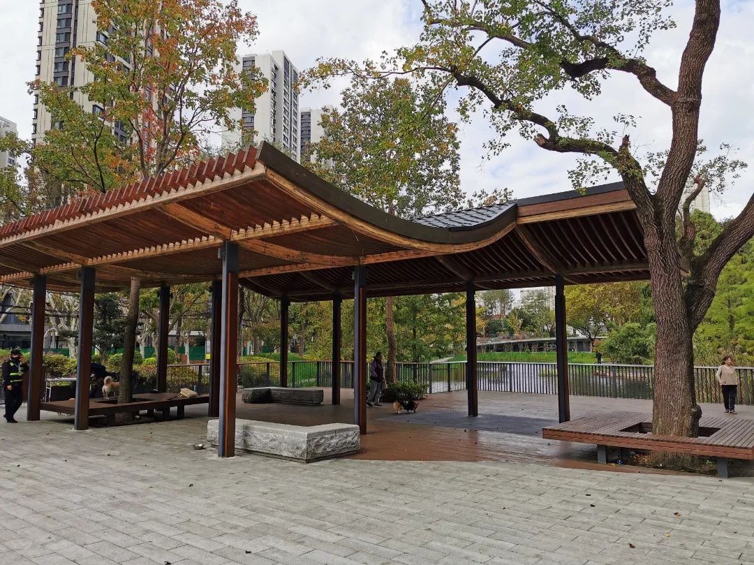 在乐园内还有长椅和凉亭让“爸爸妈妈”在这里休息,在和平公园优美的自然环境中,享受“宠物社交”的美好时光。