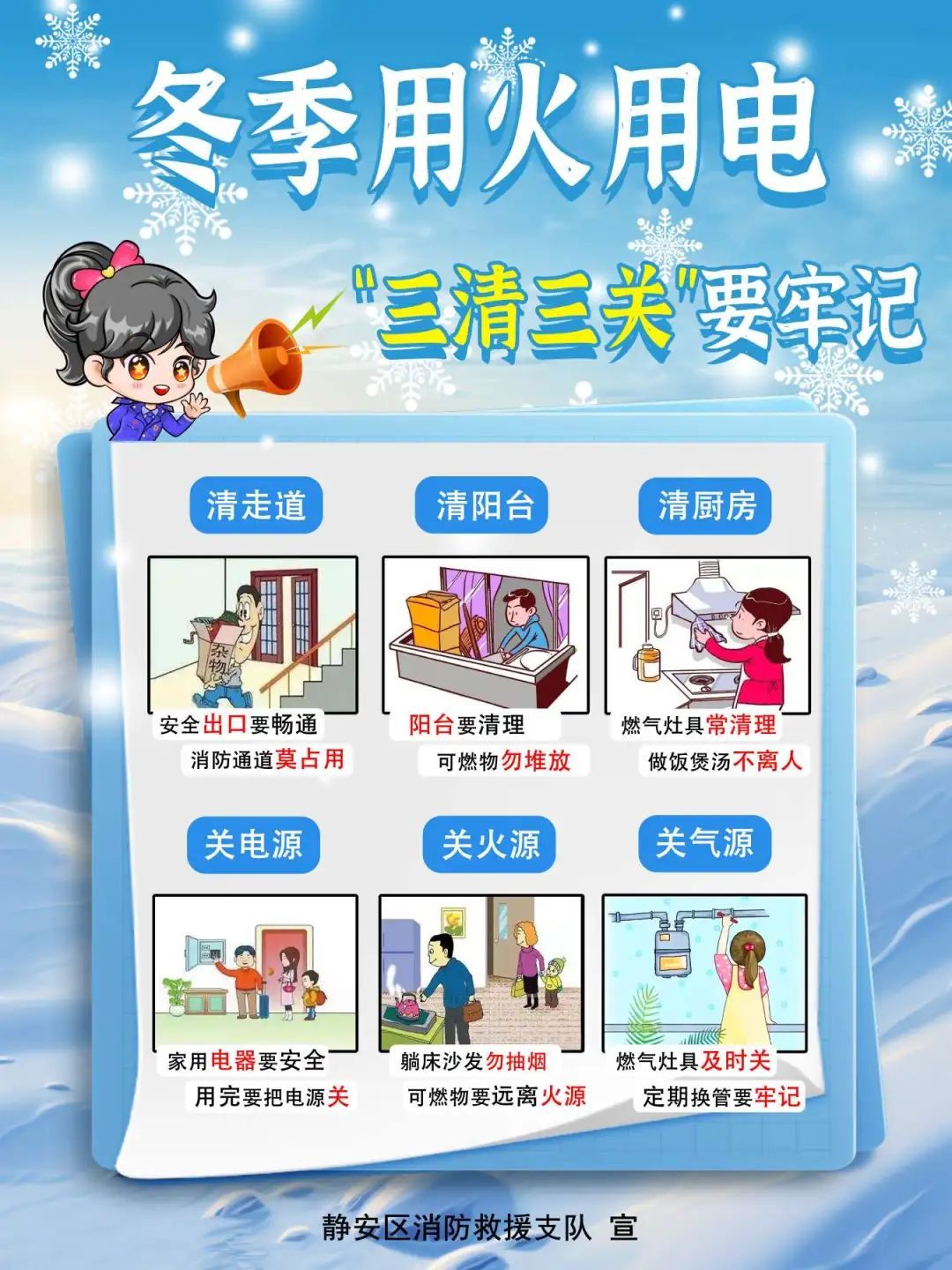 消防安全无小事。冬季用火用电有哪些注意事项?今天,静安区消防救援支队发布消防安全提示:“三清三关”要牢记。