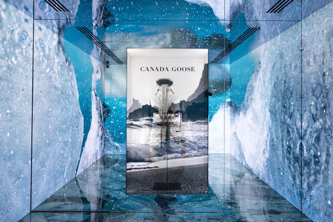 Canada Goose加拿大鹅“溯源之旅”沉浸式互动体验展融汇传承与发展,三大核心主题展区融合品牌传承、匠心工艺与先锋设计,全方位展示全新胶囊系列与多元经典单品,彰显品牌对可持续发展的坚定承诺。自茂名北路步入展馆,引人注目的外墙跃然眼前,鲜活再现了气势磅礴、奇异瑰丽的自然景观,探险之旅由此开启。