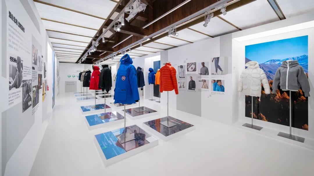 品牌历史展区呈现Canada Goose加拿大鹅的历史典藏之作。Resolute、Expedition以及Snow Mantra派克大衣陈列其间,生动诠释品牌精神,彰显丰厚底蕴。数十年来,无论是驻扎南北极科考站的科学家,抑或是穿梭于寒冬都市的城市探险家,派克大衣始终以强大性能在严寒环境下为穿着者提供周全防护。