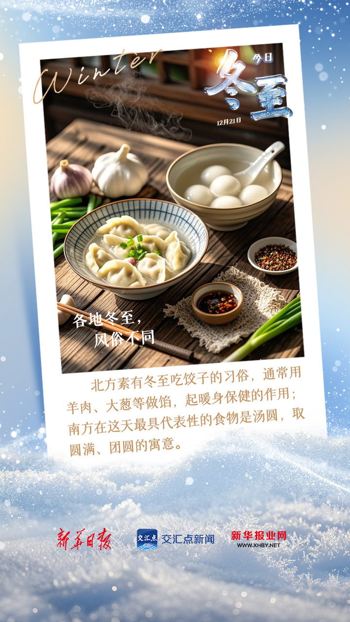 俗话说:“冬至大如年,人间小团圆”。在北方,冬至有吃饺子的习俗。在南方,一碗汤圆寓意团团圆圆、和和满满。冬至迎寒冬,你准备吃点什么?