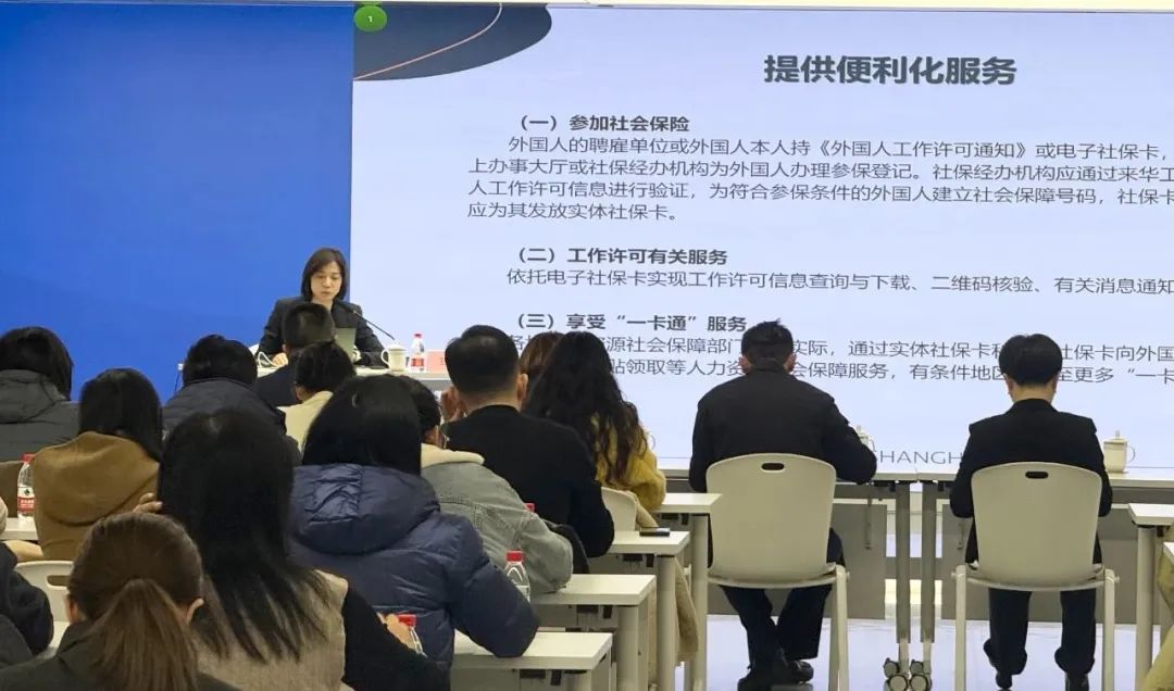 “证卡融合集成后能带来什么便利化服务?”“证卡融合过渡期如何办事?”12月20日下午,关于外国人来华工作许可证与社会保障卡融合集成工作相关政策专题培训在“上海·嘉定人才港”举行,60家区内重点单位代表参加培训。