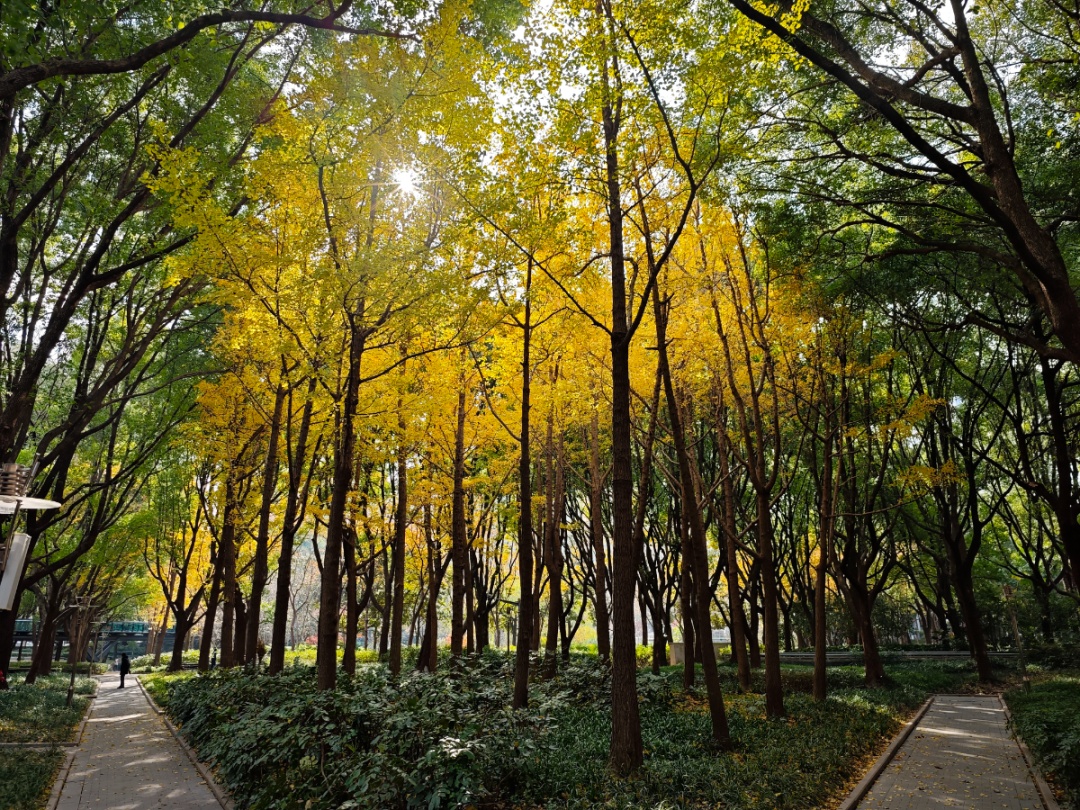 走进徐家汇公园,一棵棵银杏树在初冬时节展现出迷人的风采。阳光透过树叶洒下斑驳的光影,小径两旁的银杏,树干笔直,洒在地面上的点点光斑,给人温暖而宁静的氛围。