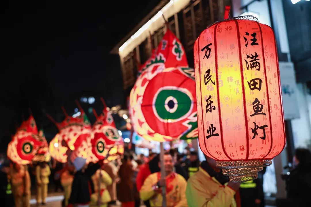 此外,现场还设置旗袍巡游、互动打卡等活动,备受大家关注的汪满田鱼灯巡游也将在今晚(1月1日)再度热闹上演。