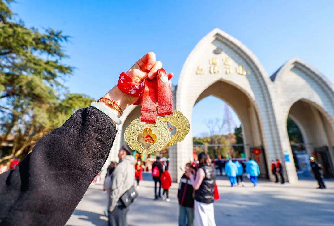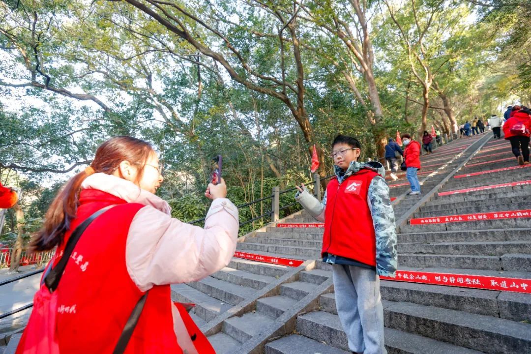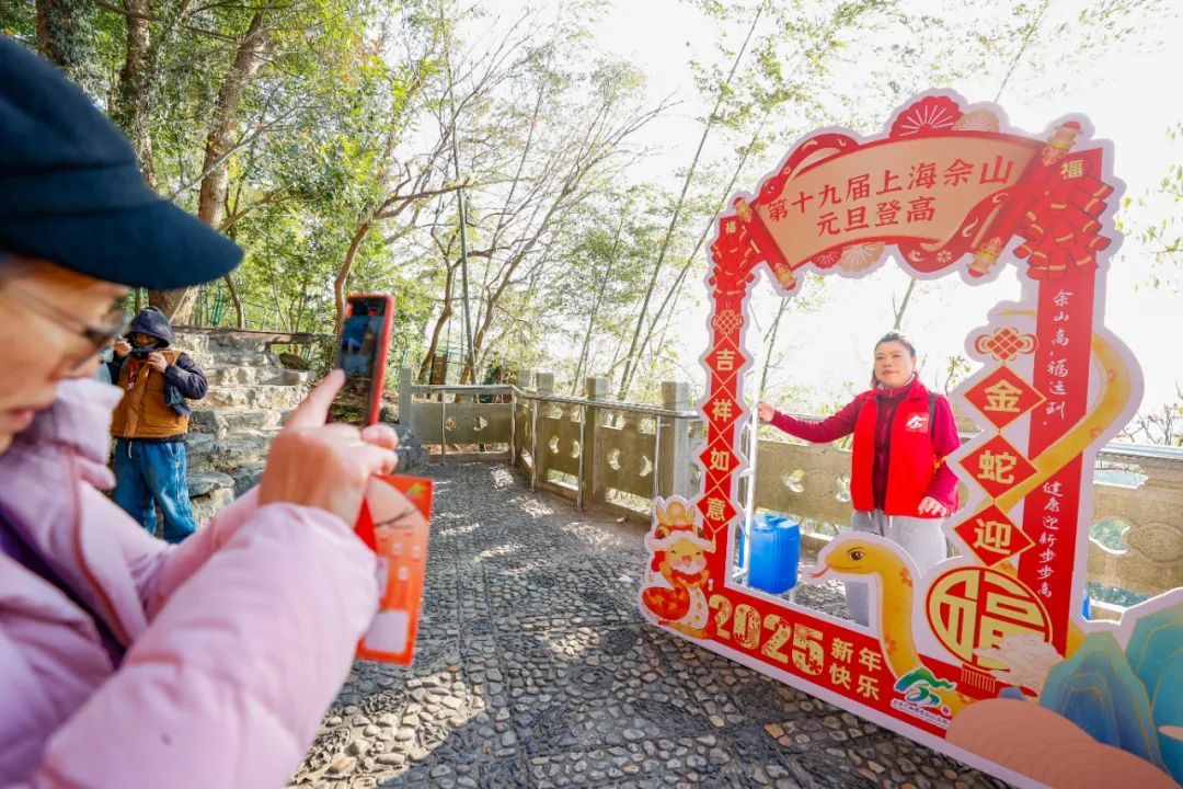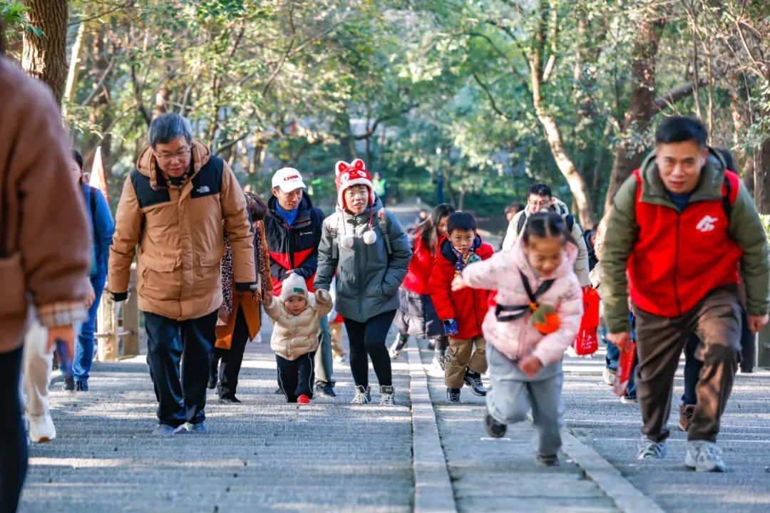 上午9点,活动正式开始,近5000名报名参与登高活动的市民,从东佘山脚下出发,迈开矫健的步伐,热情满满地朝着山顶进发。登高路途中也是看点十足,一路上设置多处新年氛围拍照点,还有由工作人员扮演福禄寿三星在前引领,与市民们共赴登高之行,祈愿新岁福运满盈,祥瑞安康。