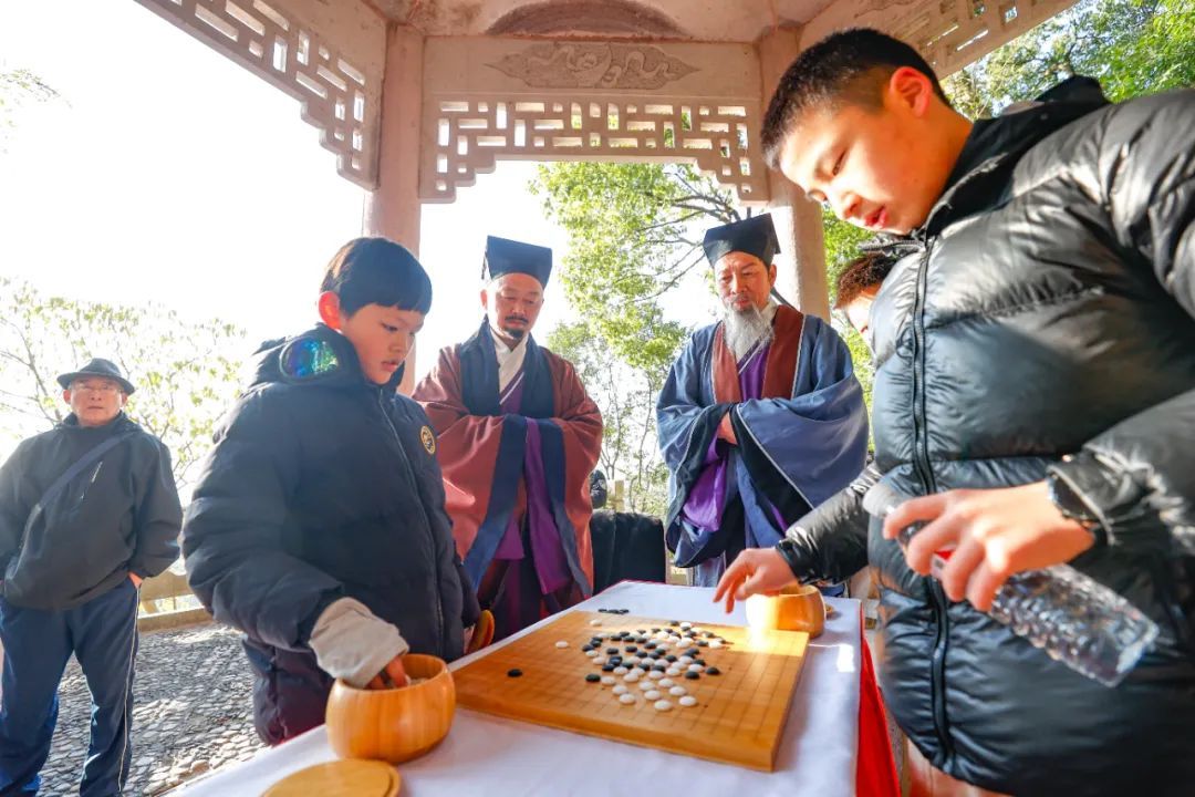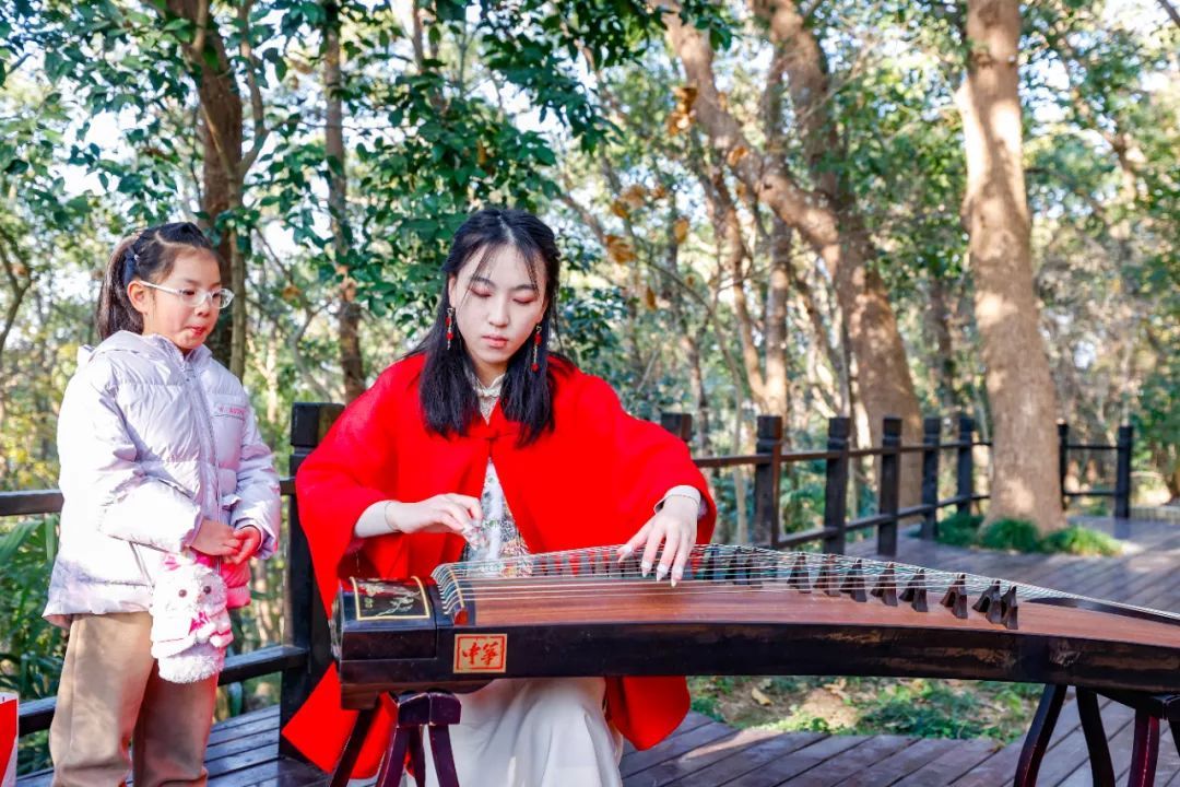 登山沿途放置了霞客君人形立牌,展示徐霞客写下的诗词名句,还有真人装扮的徐霞客、陈继儒等历史名人穿越古今,与登高市民互动合影,志愿者在一旁为游客科普点位背后的人文故事,让游客在享受登山魅力的同时,沉浸式感受佘山人文历史与自然风光。
