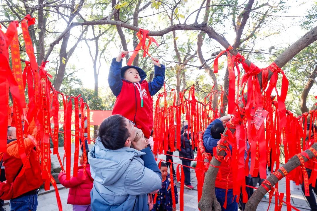 登顶成功后,大家纷纷举起活动特色纪念牌拍照留念,并在树上挂上红丝带,写下对新年的美好心愿,期许新年幸福安康,活动现场充满了欢乐喜庆的节日气氛。“今天我们一家三口来登高,锻炼身体的同时祈福新年,希望今年全家财源广进,事业步步高升,孩子学业有成。”市民尚女士在登顶后激动地告诉记者。“往年的新年第一天可能宅在家,今天能以登高的方式迎接新年,我觉得特别有意义。”市民沈先生表示。