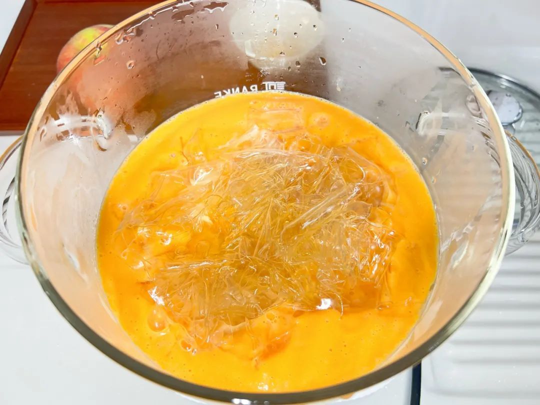 5.加入泡好的吉利丁片搅拌至融化;