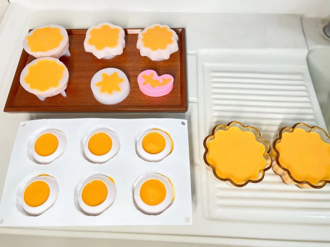 6.倒入模具,冷藏8小时,脱模。木瓜牛奶冻就完成啦~