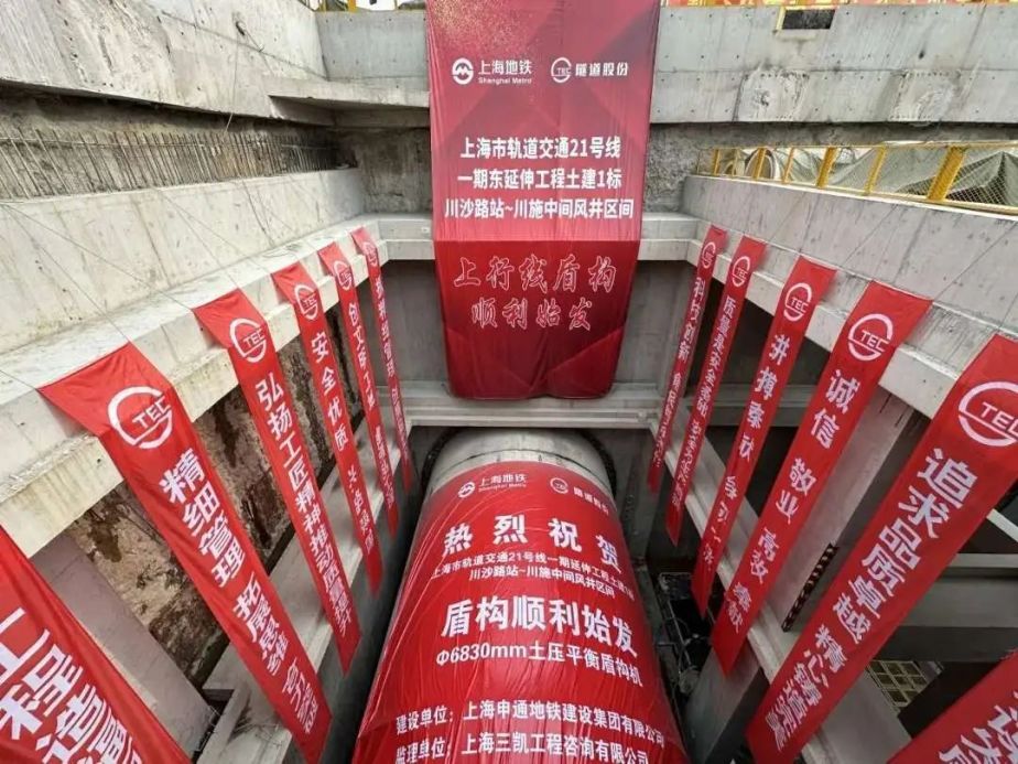 轨道交通21号线东延伸工程开始盾构掘进。1月5日,由上海申通地铁建设集团有限公司投资,上海城建市政工程(集团)有限公司承建的21号线一期东延伸工程土建1标川沙路站(原六陈路站)——川施中间风井区间上行线盾构顺利始发,这也是上海轨道交通2025年新年首台掘进的盾构机,标志着21号线东延伸盾构工程建设迈入全新阶段。