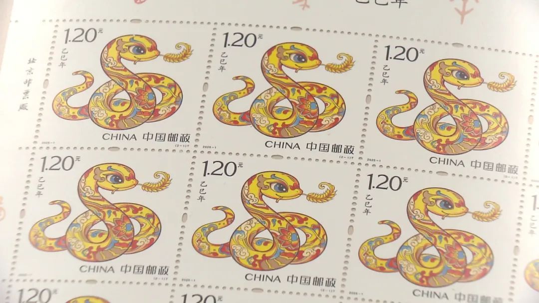 费华说:“今年是乙巳蛇年,我想为自己、为家庭带来一年的平平安安。这套邮票颜色喜庆,红红火火,又有麦穗元素,寓意比较好。”