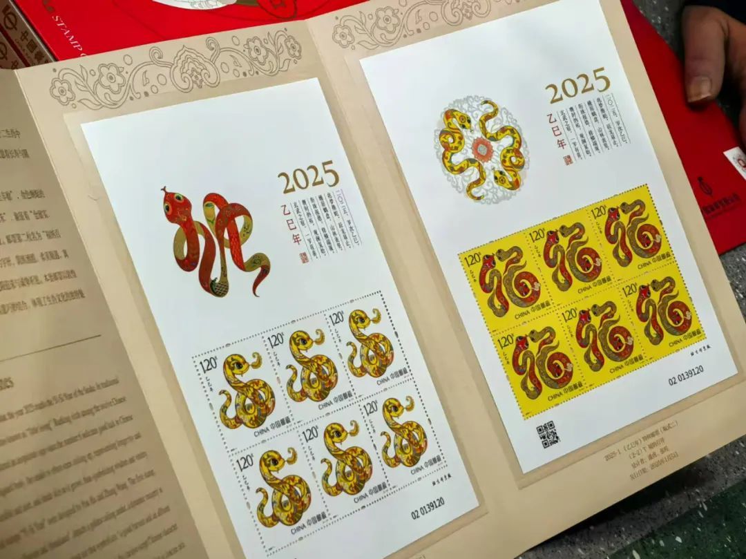 此次发行的《乙巳年》特种邮票一套2枚,分别为蛇呈丰稔、福纳百祥,全套邮票面值为2.4元。邮票图案设计以敦煌壁画和传统民俗为灵感来源,将蛇的形象与吉祥寓意巧妙结合,既体现了生肖文化的独特魅力,又凝聚了朴素灵活的民间智慧。工作人员告诉记者,生肖蛇票的发行吸引了众多邮迷前来抢购,邮局方面也提前做了充分的准备。