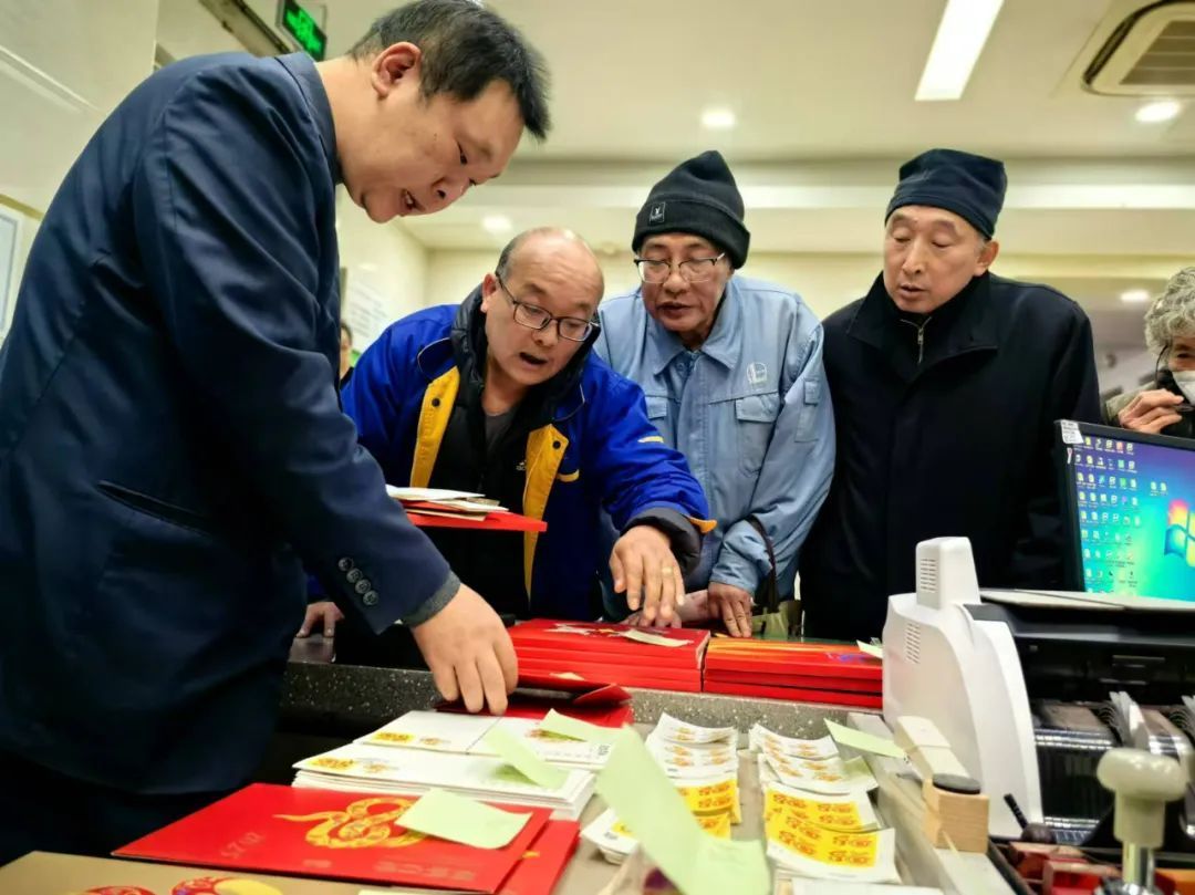 今天(1月5日)早晨6:30,《乙巳年》特种邮票迎来了首发,吸引了众多邮迷连夜排队购买。作为金山指定网点之一,金山石化邮政支局一大早也排起了长龙。