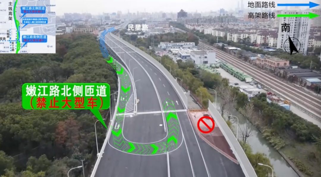 特别提醒的是,原民星路自西向东而来的车辆,至军工路无法再右转上高架,而是要左转前行至嫩江路北侧匝道上高架掉头。同时,受通行条件影响,相较于现状中环高架上匝道,这三处匝道还禁止大型客车驶入。
