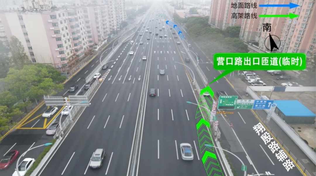 为了弥补中环民星路下匝道的功能,施工期间将对中环国和路出口、周家嘴路出口、黄兴路出口、翔殷路隧道浦西出口以及部分地面路口进行扩容改造。同时,为了减少民星路下匝道封闭带来的不利影响,将在中环内圈临时增设营口路出口匝道。