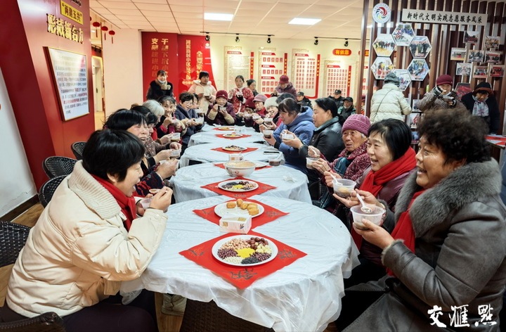 1月6日,宿迁经开区古楚街道王梨园社区开展“祥和氛围添年味 浓浓粥香暖人心”主题活动。社区邀请部分老人及儿童代表欢聚一堂,共同感受传统民俗文化。肖伟伟摄 视觉江苏网供图