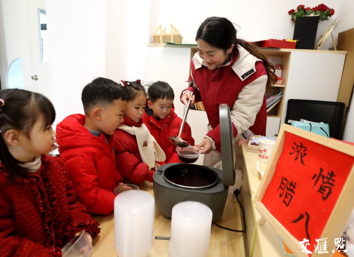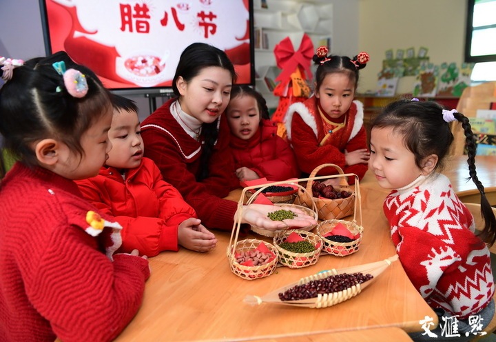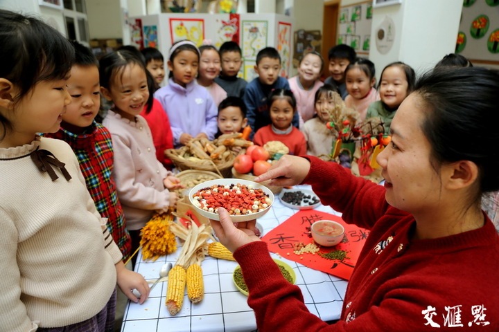 1月6日,腊八节将至,苏州市姑苏区平润实验幼儿园开展“品民俗 迎腊八”活动,让孩子感受传统文化魅力。杭兴微摄 视觉江苏网供图
